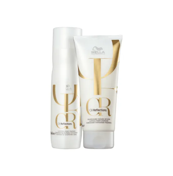 O Kit Wella Oil Reflections contém 1 Shampoo de 250 ml e 1 Condicionador de 200 ml. O Shampoo limpa profundamente e proporciona luminosidade instantânea. O Condicionador desembaraça os fios, proporciona maciez, brilho e tem ação em 30 segundos. É perfeito para todos os tipos de cabelos. Seu tamanho é ideal para os cuidados em casa.